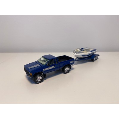 OPEN BOX AS-IS 1/64 Johnny Lightning 1985 Toyota SR5 Pickup with Malibu Speed Boat Trailer (Blue) Diecast Models