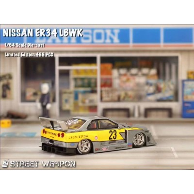 1/64 SW Nissan Skyline GT-R GTR R34 ER34 LBWK #23 (Silver & Yellow) Diecast Car Model